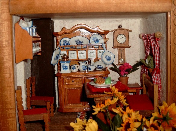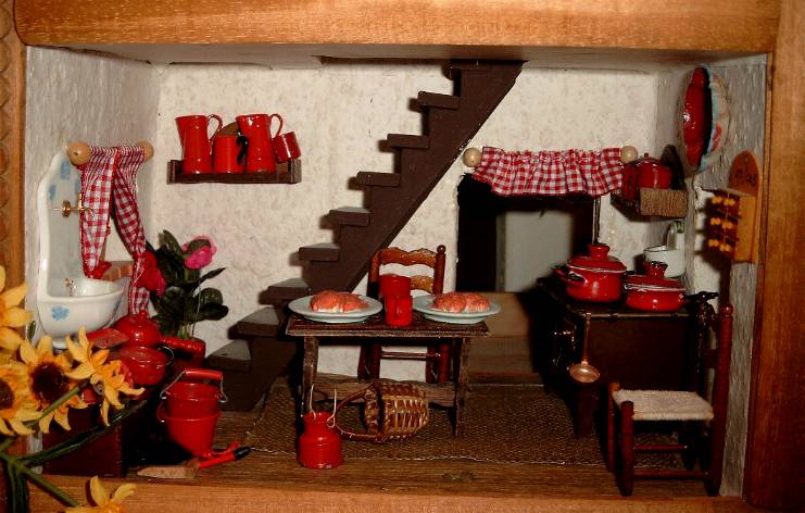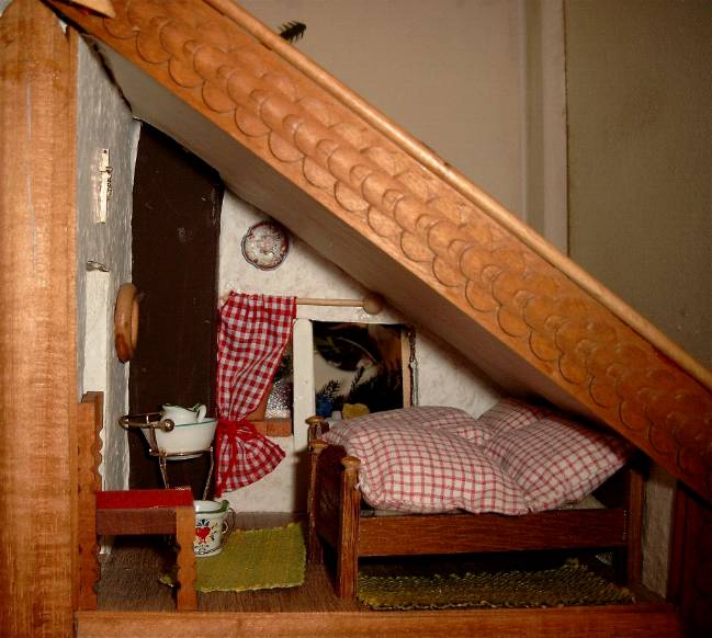 Das “dicke Haus” ist ein Flohmarkt-Fund. Es heißt so, weil es aus richtig dicken Brettern besteht ( und entsprechend schwer ist...!) In der Küche soll später einmal ein Fischladen entstehen.