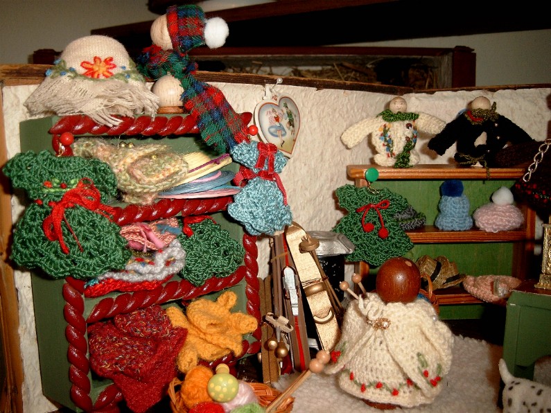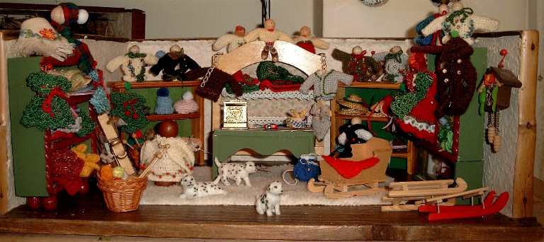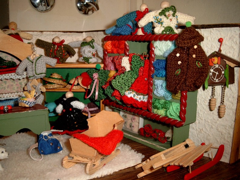 Auch Wolle für die langen Winterarbende bekommt man hier. Und Schlitten und Ski werden auch verliehen.
