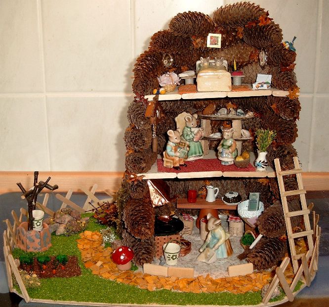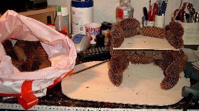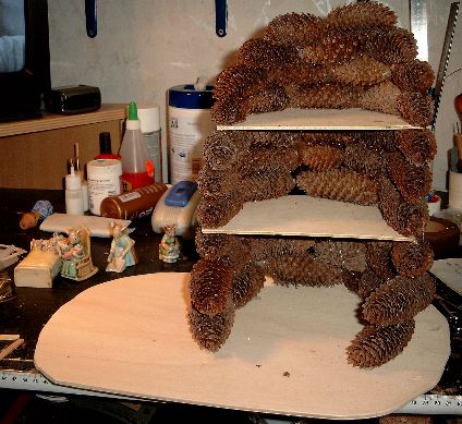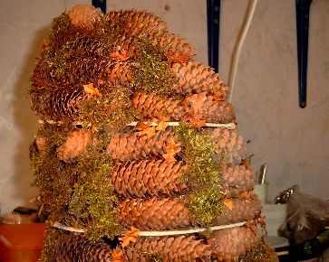 Schnell einige Tannenzapfen gesammelt und mittels Heissklebepistole zusammengesetzt...