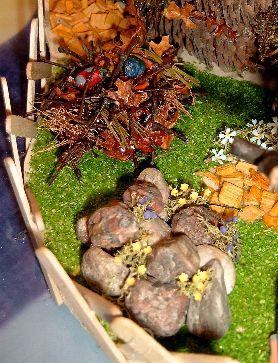 Von hinten hab ich alle Löcher und Verbindungsstellen mit trockenem Moos und künstlichen Blättern verdeckt.